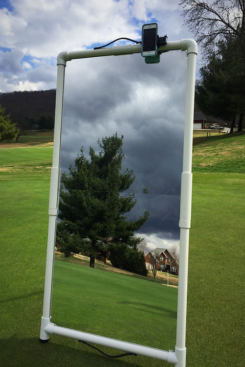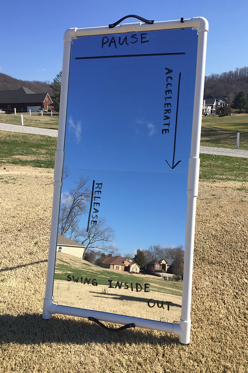 The folding golf mirror is made in the USA, is professionally engineered, and is a shatter resistant acrylic folding golf training mirror that can help improve your golf game.