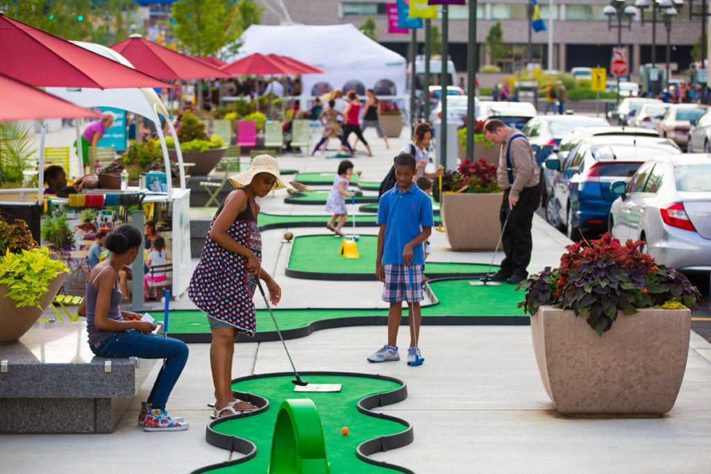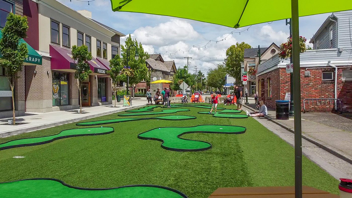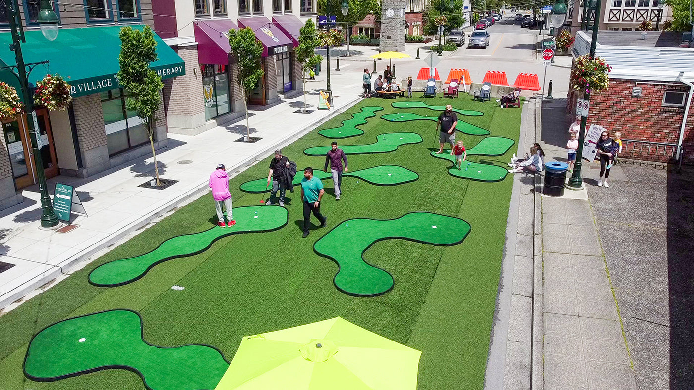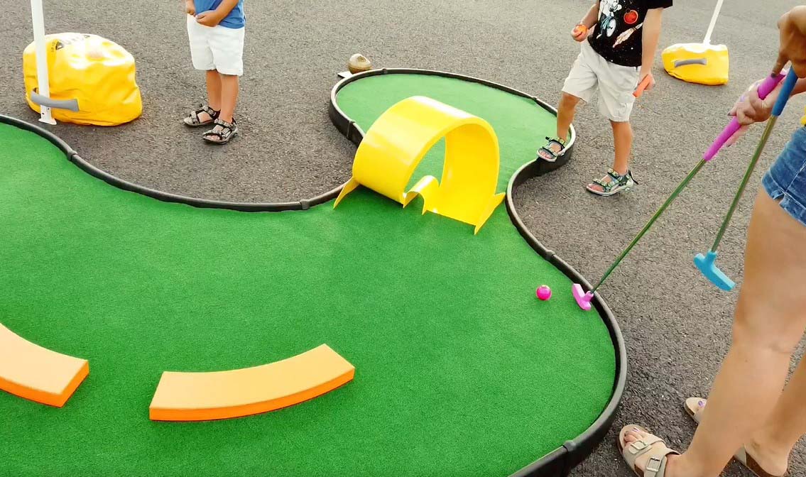 Mini Links was designed with one thing in mind, big-time FUN! The award winning Mini Links system easily turns any location into a profit producing business or event. The patented panel system allows for easy set up and shipping excellence never before seen in the portable mini golf market. It's simple: just link the panels together over any terrain and lay out the pre-cut turf. That's it! Plus, Mini Links holes are available with or without our challenging obstacles.