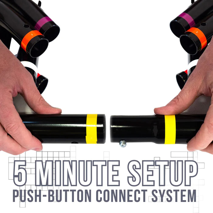 - Lightweight, Rugged,1.5" Powder Coated Tubular Aluminum Frame.