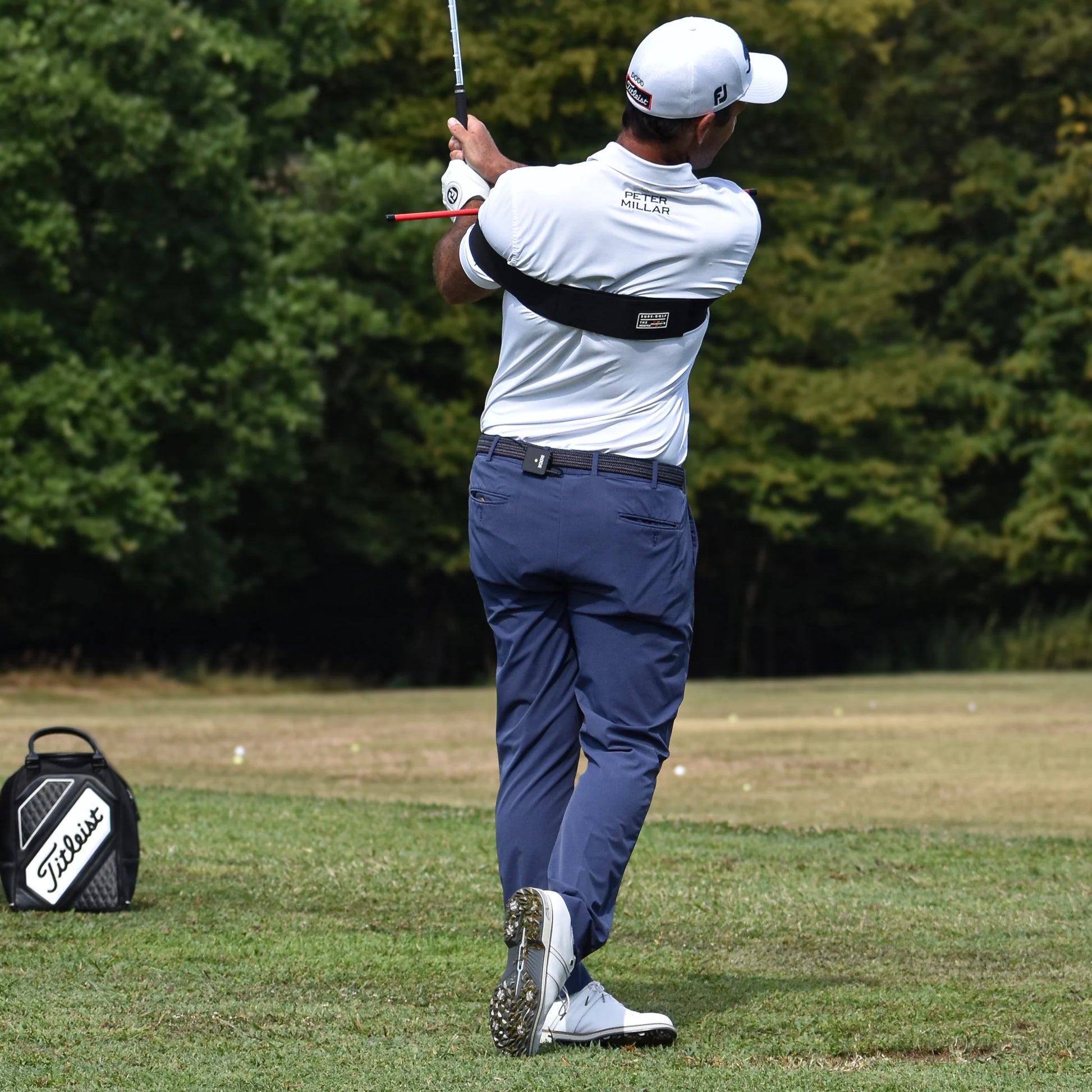 Rotation is an essential component of the golf swing, but understanding the intricacies of rotation, tilt, and turn can be challenging. The Rotator simplifies these complexities, clearly highlighting shoulder plane and rotation throughout your golf swing. The combination of the harness and alignment rod provides obvious feedback on how the torso turns and tilts throughout the swing, while the torso strap promotes a more fundamental posture relationship and prevents excessive arm lifting for a more connected, controlled action.